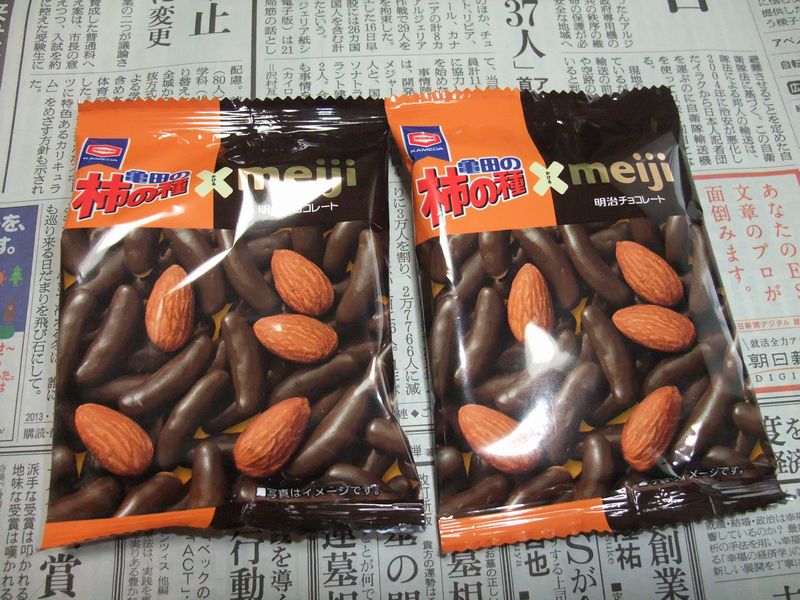 明治コラボの柿の種は知りませんが、チョコで被さったのは他にもありますよね。