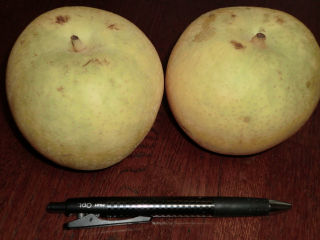 フラッシュしたら青梨のように見えますが赤梨で~す。