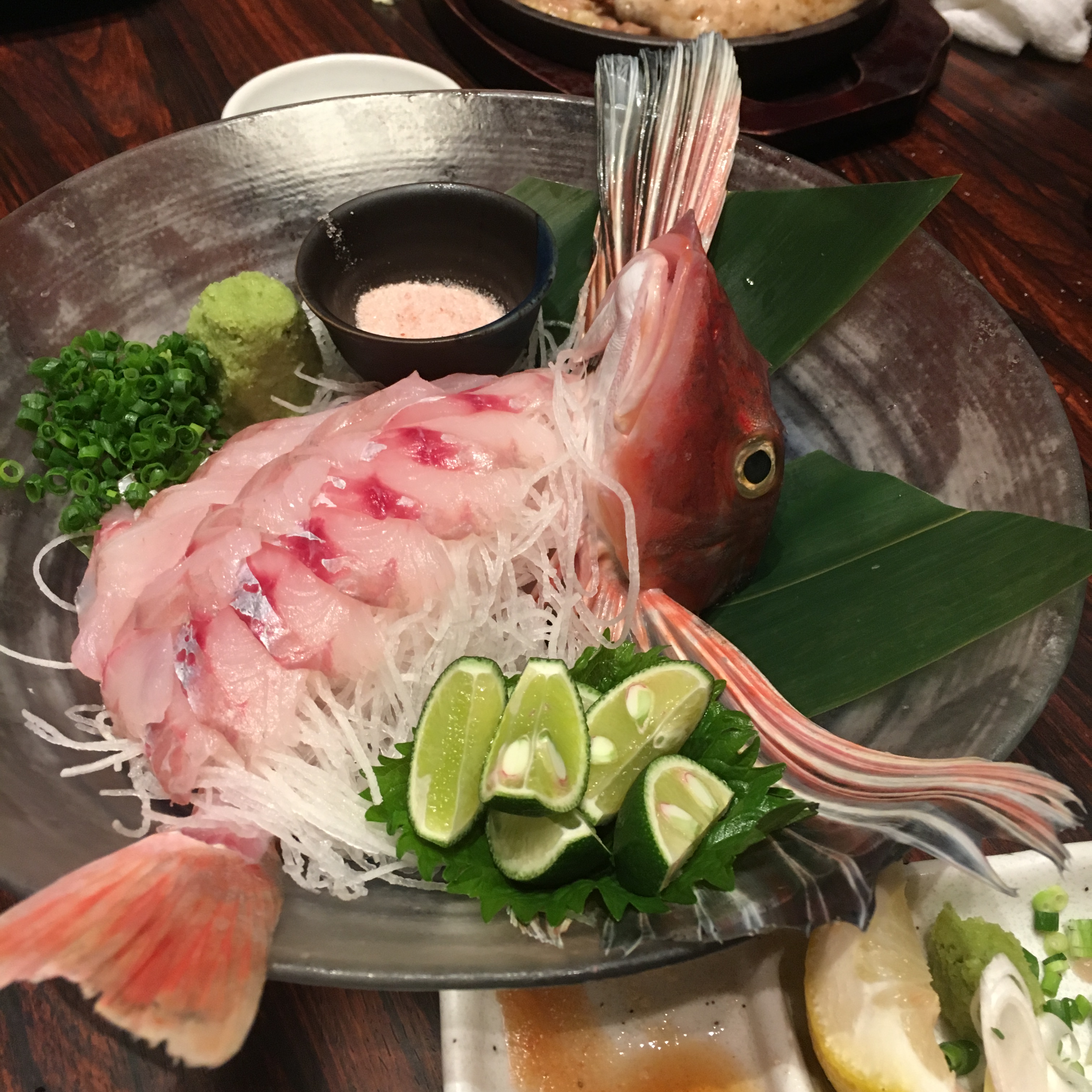 後輩氏から差し入れのホウボウのお造り