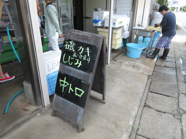 路上には看板が「中トロ・磯カキ・しじみ」