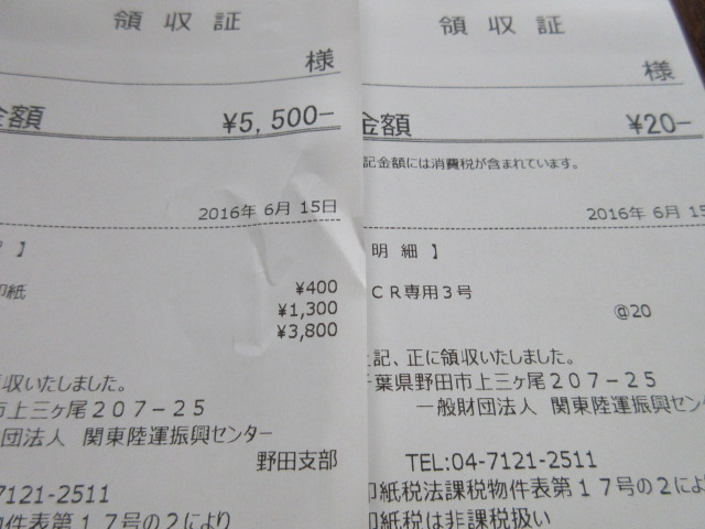 自賠責支払いカウンター横の用紙を20円で購入し、