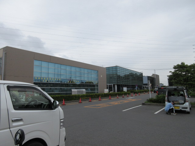 バイクに乗って、車体検査棟の1レーン(2輪)に行くように指示されます。