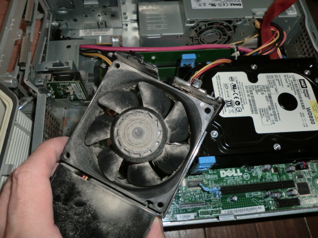 ファンを取り外すと、スゲー汚いこびり付いた埃(ホコリ)が