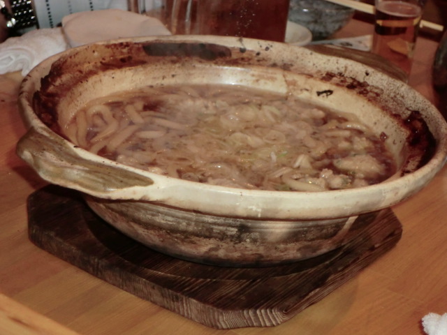 この写真は鍋を食べ終わった後の〆のつみれ饂飩の写真です