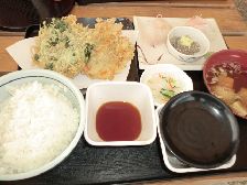 かき揚げ2種+生しらす+刺身の『かあちゃん御膳』