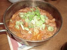 鍋に入れ替えてネギを入れて食べます。