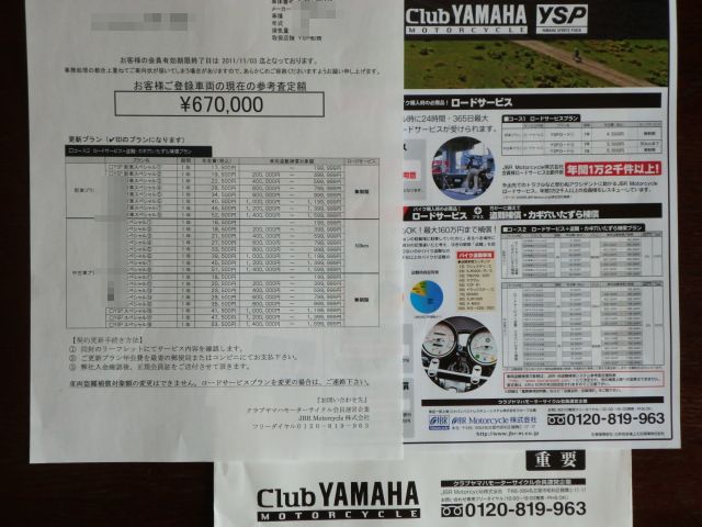 で、YSP の盗難保険+ロードサービスの案内が届きまして・・・