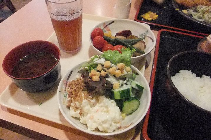 サラダ、味噌汁、漬物、煮物少々、フリー