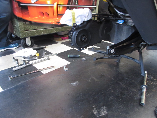 リアタイヤ組み込み中