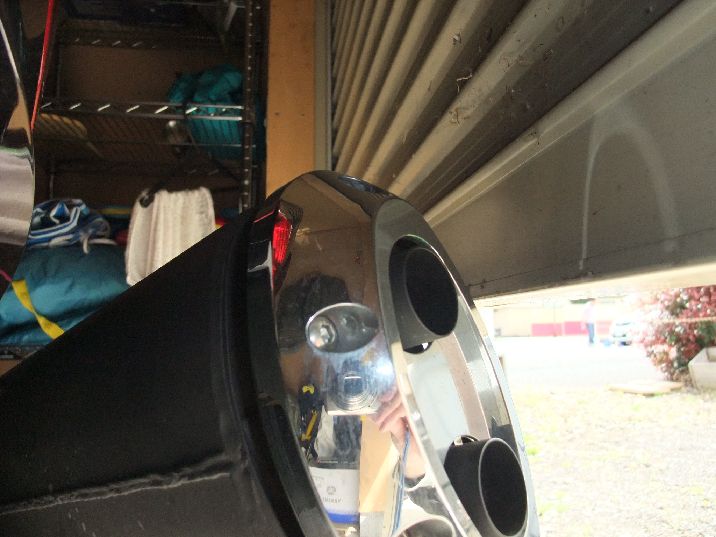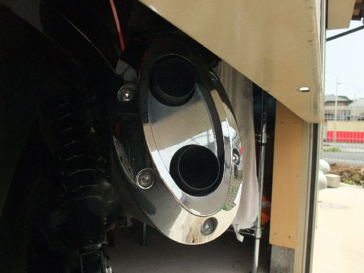 ガレージシャッターにマフラー部分が接触