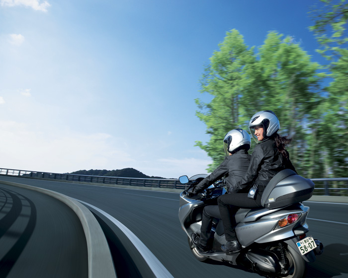 ●進化したオートマチックトランスミッション 「フォルツァ Z」と「フォルツァ Z ABS」に搭載のオートマチック機構“Honda Sマチック Evo”には、従来からの無段変速のDモード・Sモード、オートシフトモードのAモード、マニュアルモードの4つのモードに加え、新たに5番目のモードとして、S7モードを搭載。S7モードは、同じオートシフトモードのAモードに比べ、エンジンを高回転に保持しながら、最適な駆動力を得られるギアポジションに自動変速を行う。これにより上り坂の多いワインディング路などでも力強い走行フィーリングを得られ、マニュアルトランスミッション感覚のスポーティーな走りを実現している。