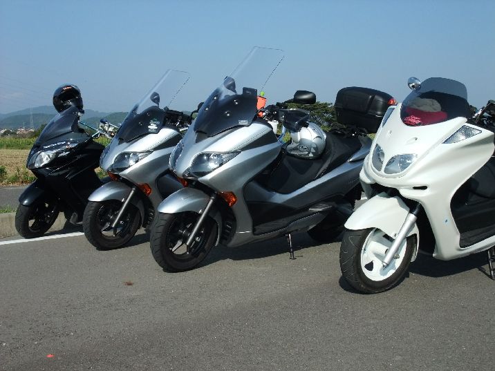 2008年納車のフォルツァ・MF10(銀)から2010年11月TMAX(SJ08黄色)に乗り換え、2017年現在もまだまだ黄色に乗ってま~す。最近は原付状態のTMAXです。