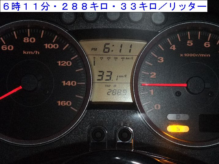 帰宅は・・・6時11分・288キロ・33キロ/リッターでした。