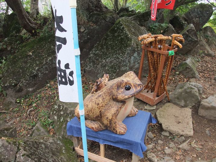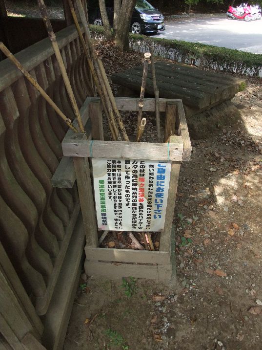 厳しい山道のためか、無料の杖があります。
