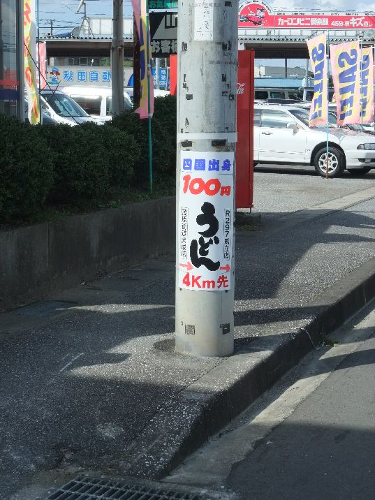 電柱の看板 100円の讃岐饂飩 食いたい