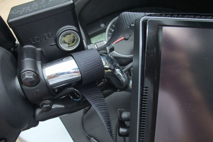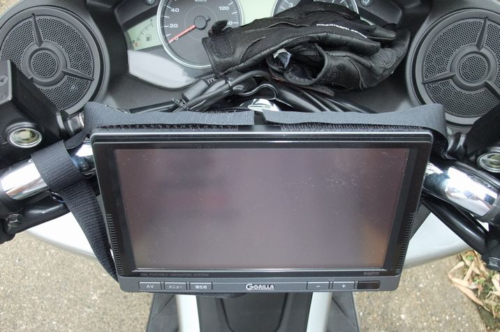ナビ自体の落下防止の観点からマジックテープで付けてます。