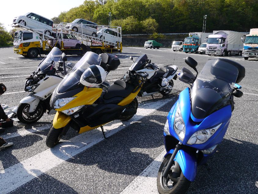 2008年納車のフォルツァ・MF10(銀)から2010年11月TMAX(SJ08黄色)に乗り換え、2017年現在もまだまだ黄色に乗ってま~す。最近は原付状態のTMAXです。