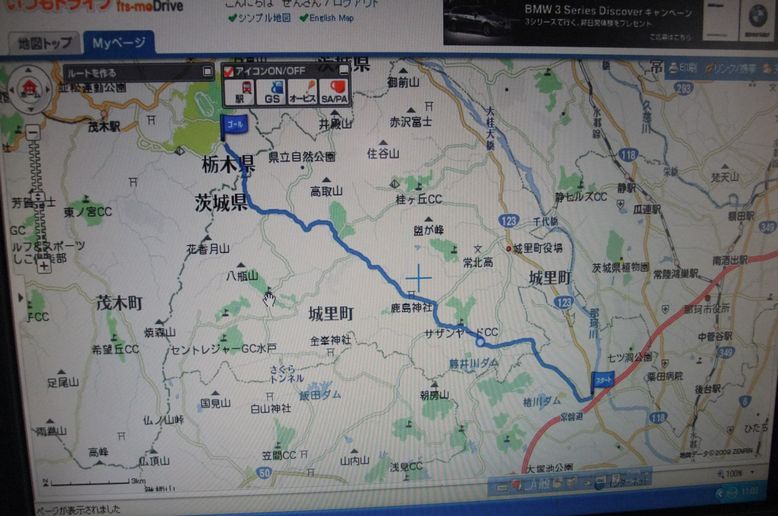 もてぎはサーキット場がありますから、地図上でも分かり易いですね。