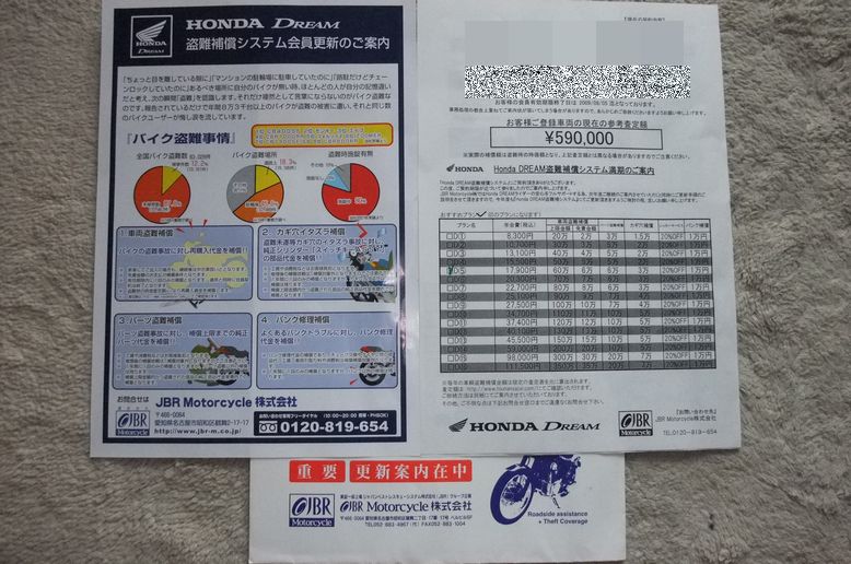 ホンダドリーム店で購入した際に加入した盗難保険