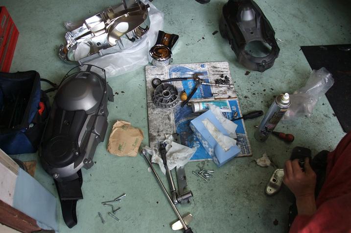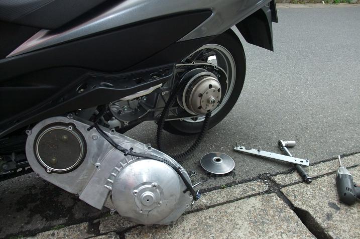 プーリーとメッキのプーリーカバーの交換