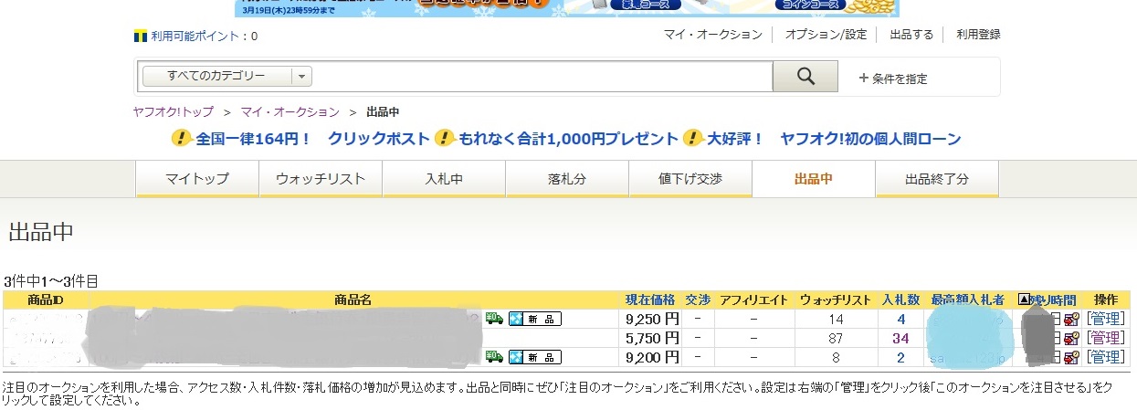 在庫処分と言いますか不要なモノの3つを オクで出品中です。