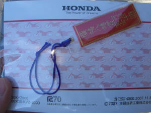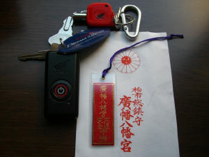 帰りにワタシは交通安全守りを2種類買って車用とフォルツァ用に