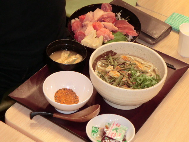 マロさんのお昼(夕方)は、うどんとマグロで2人前!がっちり!