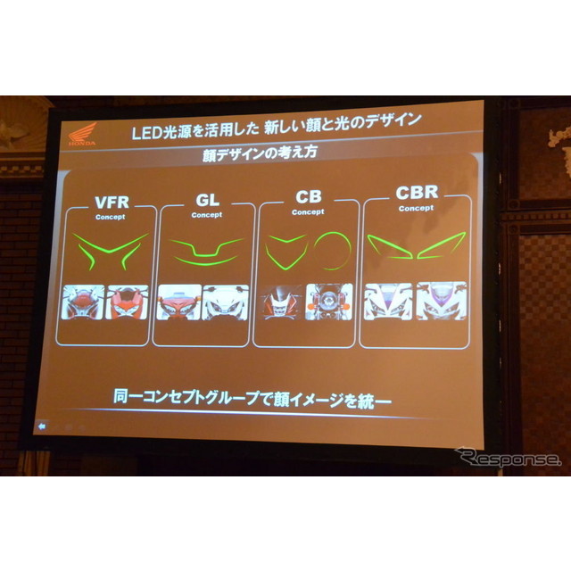 「今後はLEDを活用した光の演出も使いながら、同一コンセプトに属するモデルの顔つきを共通化していくことで、ホンダとしての独立性を確立していく」と述べた。