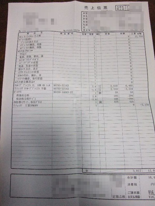 3月に点検&オイル交換実施