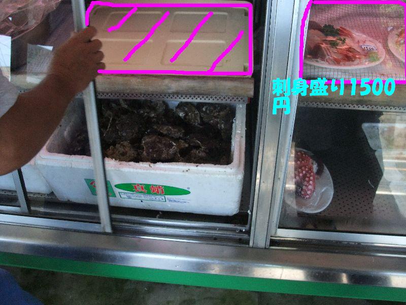 ショーケース右側上は刺身盛り合わせ ひと皿1500円