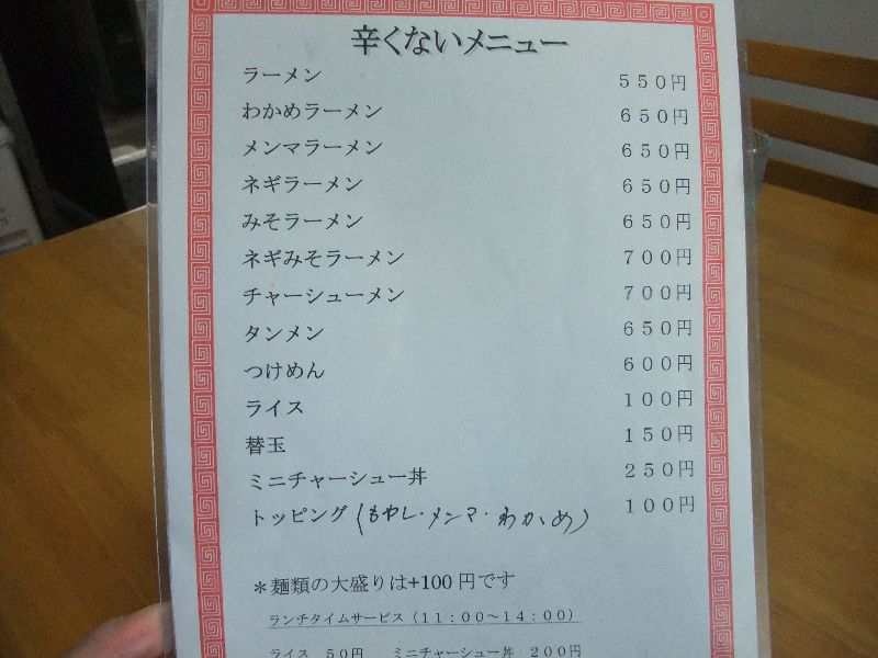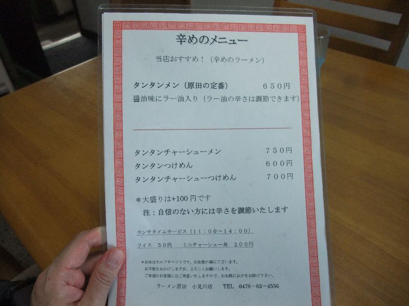 メニューは辛めのメニュー お約束の 勝浦タンタンメン