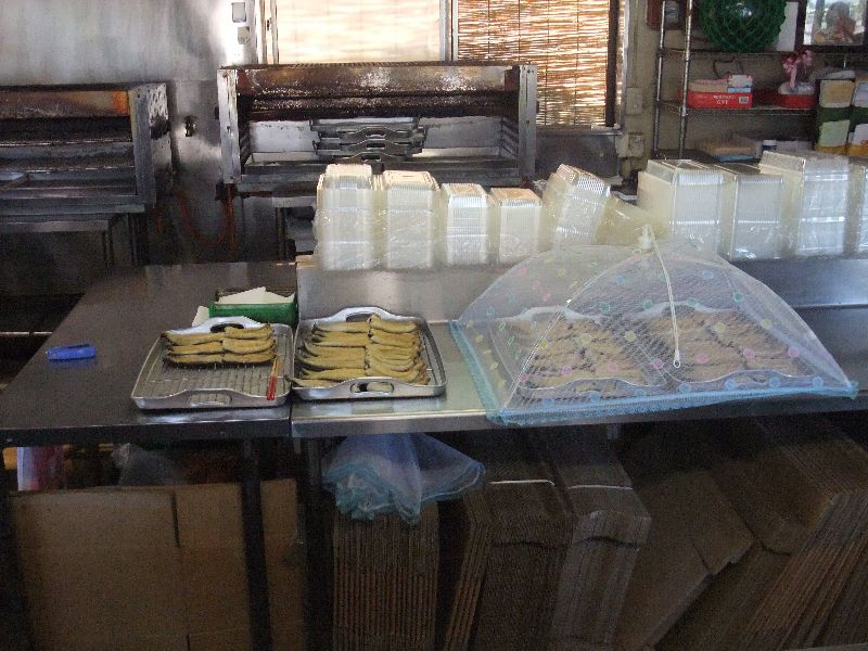 道路に面した 店先の仮設 調理場で