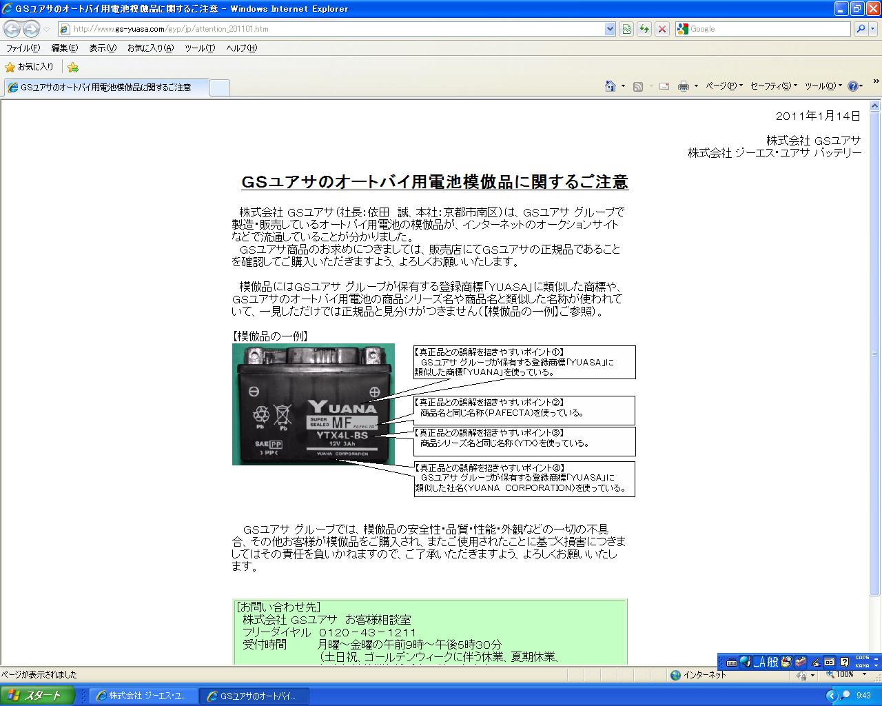 ユアサのHPを見るとこんな記事も(オートバイ用バッテリーの模倣品)