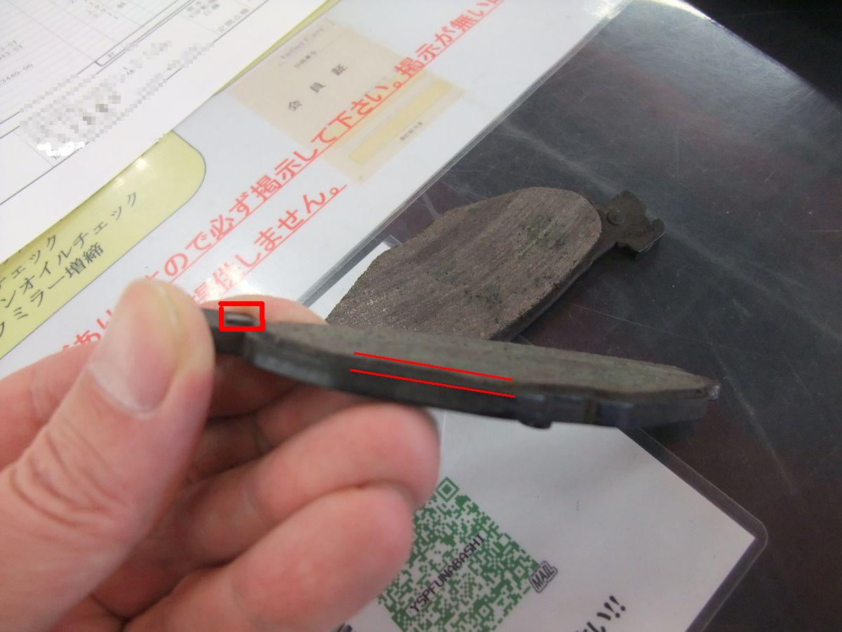 整備サン曰く パッド厚みより横の金属部が出てしまうギリギリでしたとのことでした。
