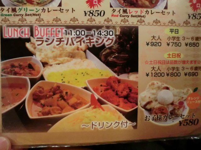 飲み物・サラダ・サフランライス・白ライス・カレー3種・
