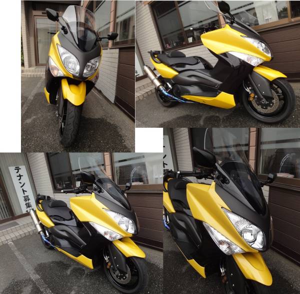 2008年納車のフォルツァ・MF10(銀)から2010年11月TMAX(SJ08黄色)に乗り換え、2017年現在もまだまだ黄色に乗ってま~す。最近は原付状態のTMAXです。