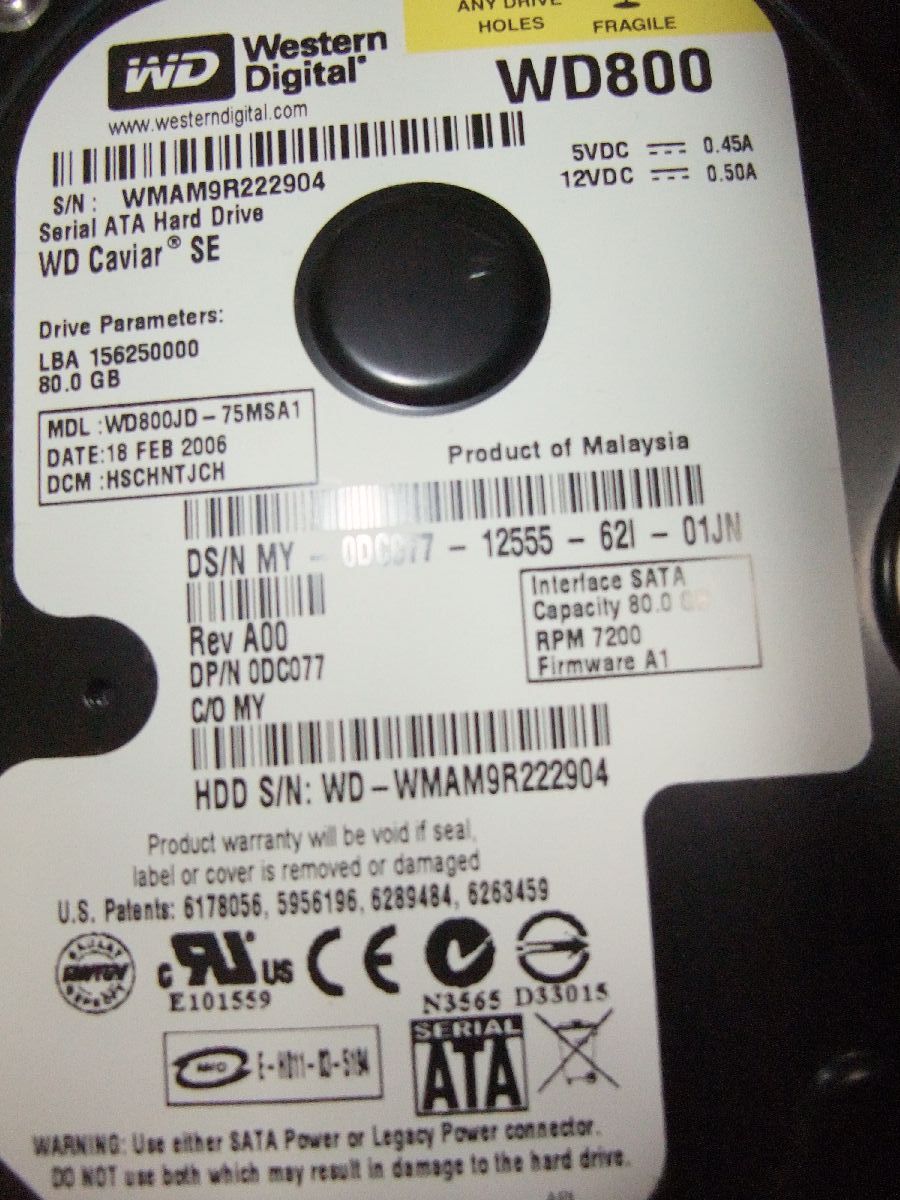 HDD シール記載は80GB・・・不明(購入時のまま)